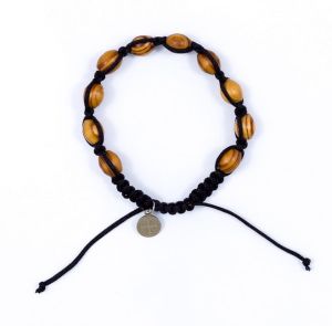 Różaniec bransoletka z drewna w kolorze drzewa oliwnego z medalikiem św. Benedykta.