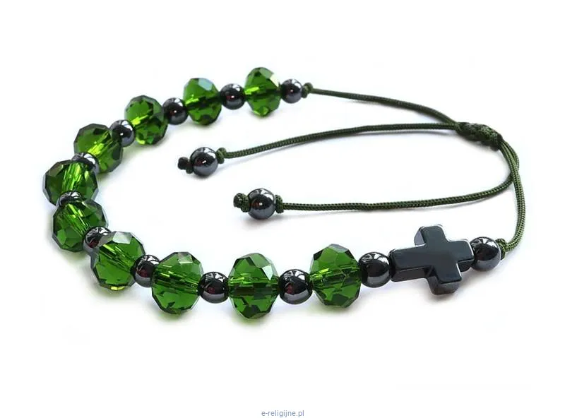Różaniec bransoletka z zielonych kryształków z regulacją 8639 [P5]