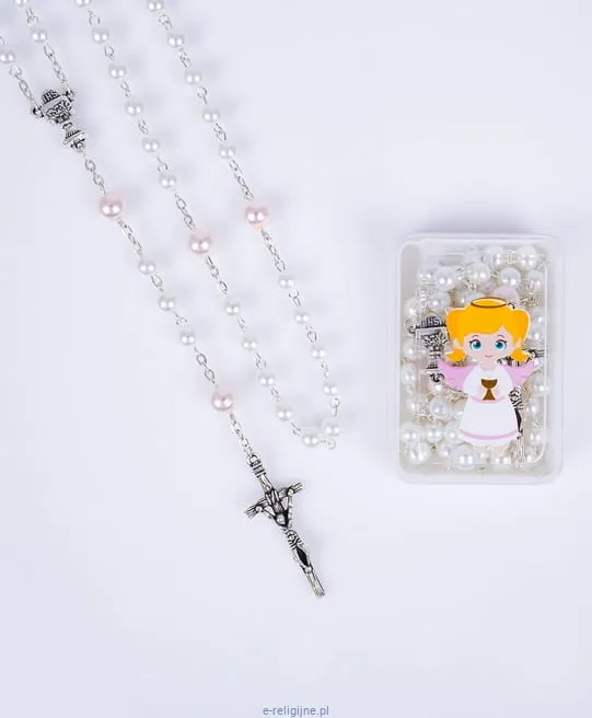 Różaniec dla dziewczynki do I Komunii z pudełkiem