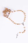 Drewno różańca przypomina drzewo oliwne, koraliki o średnicy ok. 6 mm wykonane starannie, krzyżyk ma długość 4 cm.