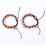 Bransoletka wykonana z drewnianych koralików w kształcie kostek o wymiarach 1 x 1 cm oraz sznurka zaciskanego na ręce za pomocą specjalnego splotu. Dzięki temu średnicę różańca można regulować w zależności od potrzeby - w zakresie 6,5 cm - 9 cm.