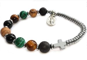 Praktyczny i wygodny różaniec na rękę w formie bransoletki z kamieni szlachetnych z cudownym medalikiem.