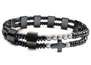 Elegancki i nieszablonowy wykonany ręcznie z kamieni hematytu różaniec na rękę dla mężczyzny. Bardzo wygodny w zakładaniu i noszeniu. Ciekawa alternatywa dla tradycyjnego różańca, która jednocześnie jest elegancką ozdobą.