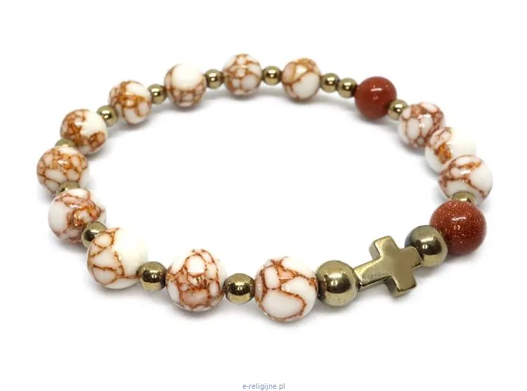 Różaniec na rękę z howlitu i złotego hematytu - biżuteria chrześcijańska 8902 [k80]