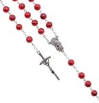 Łańcuszek w różańcu wykonany jest ze stali nierdzewnej, koraliki o wielkości 8 mm ze szkła.