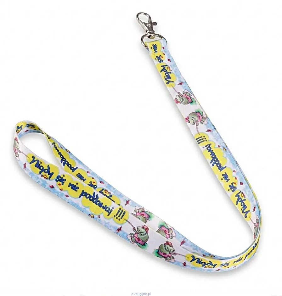 Praktyczna smycz do kluczy to coś więcej niż tylko gadżet organizacyjny – to przedmiot codziennego użytku, który niesie ze sobą pozytywne przesłanie. Model "Nigdy się nie poddawaj !!!" wyróżnia się żywą kolorystyką i dynamiczną grafiką, która ma za zadanie podnosić na duchu w trudniejszych momentach dnia.