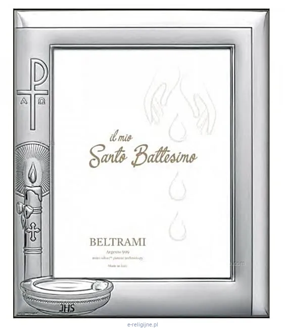 Ozdobna ramka na zdjęcie idealnie nadaje się na upominek z okazji Chrztu Świętego. Produkt laminowany srebrem z załączonym certyfikatem