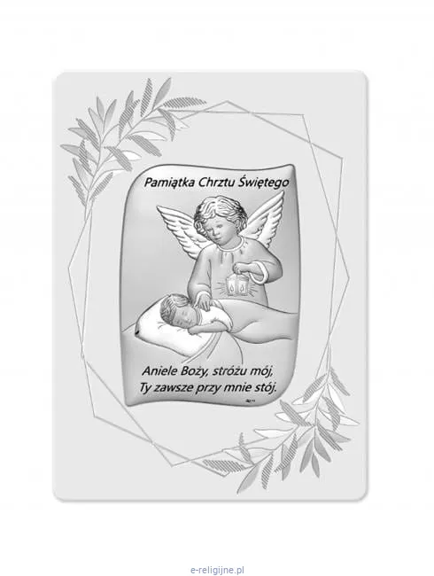 Srebrny obrazek na chrzest z aniołkami DS117FO/1, 11X15