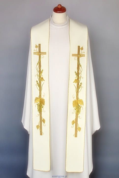 Stuła haftowana biała do koncelebry