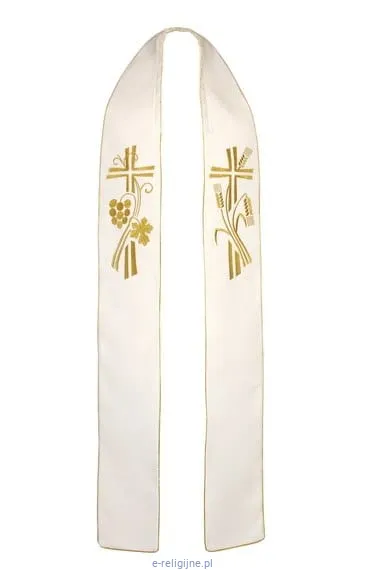 Stuła biała haftowana z motywem Eucharystycznym długa.