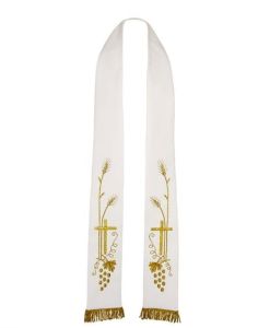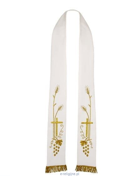Stuła biała ręcznie haftowana z motywem Eucharystycznym.