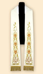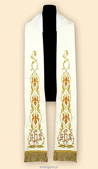 Stuła biała rzymska z bogatym haftem.