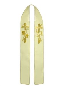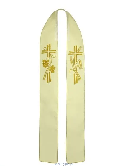 Stuła ecru ręcznie haftowana z motywem Eucharystycznym 4-172-1