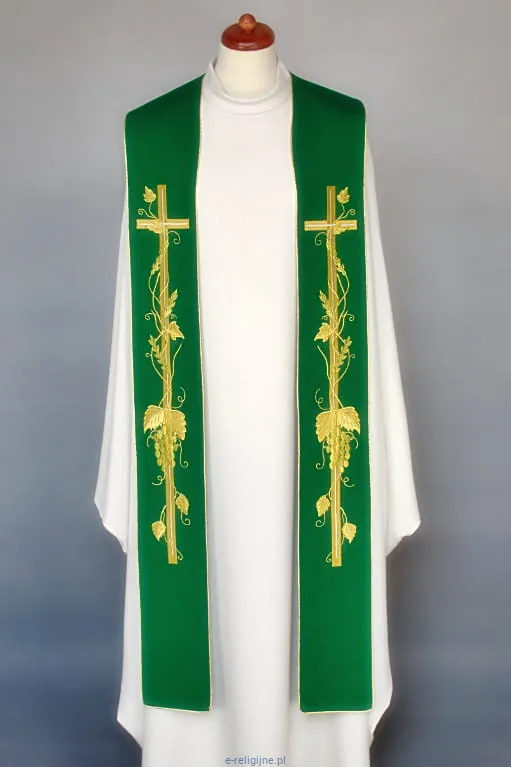 Stuła haftowana zielona do koncelebry