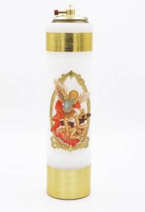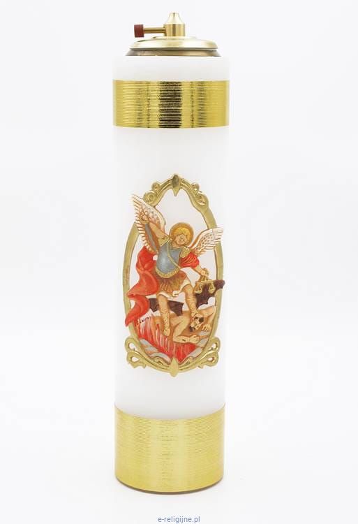 Wyjątkowa świeca ołtarzowa w zestawie z wkładem regulowanym z aplikacją przedstawiająca Księcia Wojsk Niebieskich - Świętego Michała Archanioła. Łączy tradycyjne rzemiosło świecarskie z głęboką symboliką liturgiczną, stanowiąc nie tylko element wyposażenia ołtarza, ale także przypomnienie o nieustannej walce dobra ze złem.