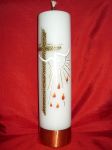Świeca ołtarzowa na wkład olejowy z ręcznie malowaną aplikacją motywem Ducha Świętego