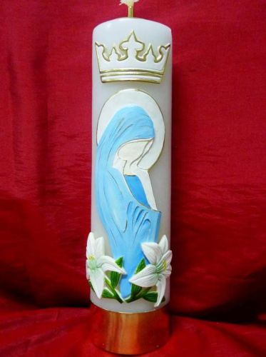 Świeca ołtarzowa z wkładem olejowym – biała lub żółta, 8×30 cm ręcznie malowana OR6