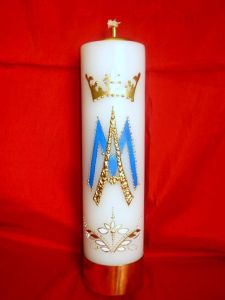 Świeca ołtarzowa na wkład olejowy z ręcznie malowaną aplikacją z motywem Maryjnym