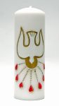 Świeca ołtarzowa na bierzmowanie, ręcznie zdobiona. Wysokość 30 cm, średnica 7,2 cm, waga ok. 0,9 kg.