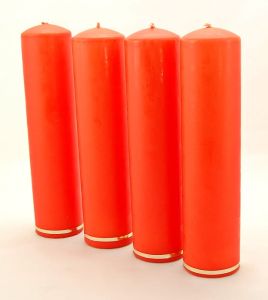 Cztery świece do wieńca adwentowego. Komplet świec o wysokości 20 cm i średnicy ok. 7,2 cm w kolorze czerwonym. Świece wykonane z najlepszej jakości parafiny, gwarantującej równe spalanie przez długi czas. Nie kopcą.