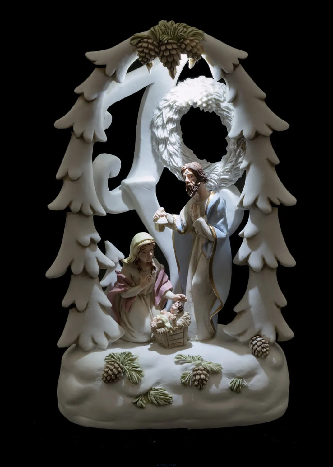 Piękna stylowa szopka w kształcie choinki będzie wspaniałą dekoracją na czas Bożego Narodzenia.