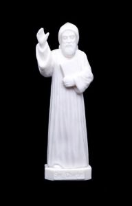 Figurka św. Charbela wykonana z alabastru syntetycznego o wysokości 18 cm.