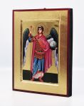 Bizantyjska ikona z wizerunkiem św. Rafała Archanioła. Wykonana metodą zatapiania lnianego płótna z wizerunkiem w drewno, złocenia wykonane ze sproszkowanego złota.