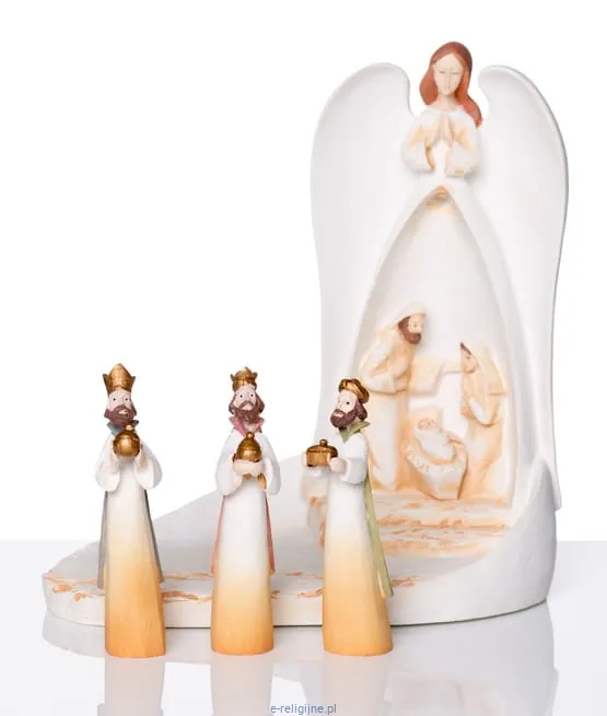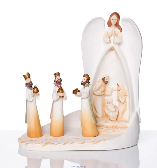 Święta Rodzina i Trzej Królowie: podświetlana szopka, dekoracja na czas Bożego Narodzenia z ruchomymi elementami (figurki Trzech Króli)
