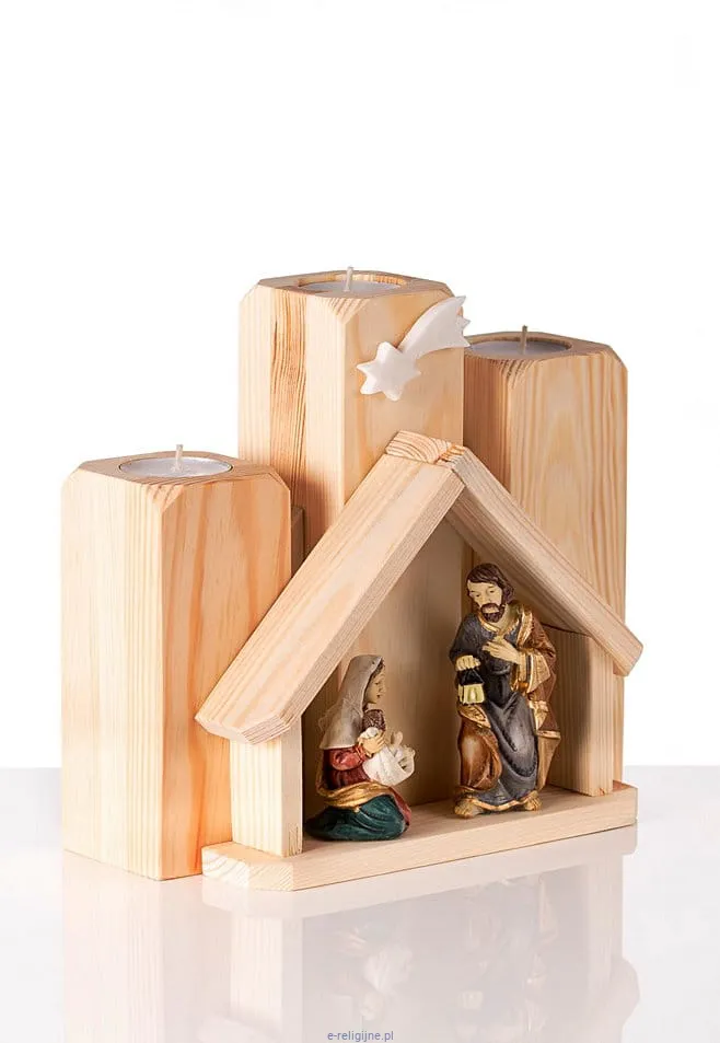 Drewniana Szopka - świecznik potrójny na tealight'y.