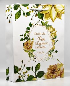 Torba na prezent z biblijnym cytatem "Niech cię Pan błogosławi ... "
