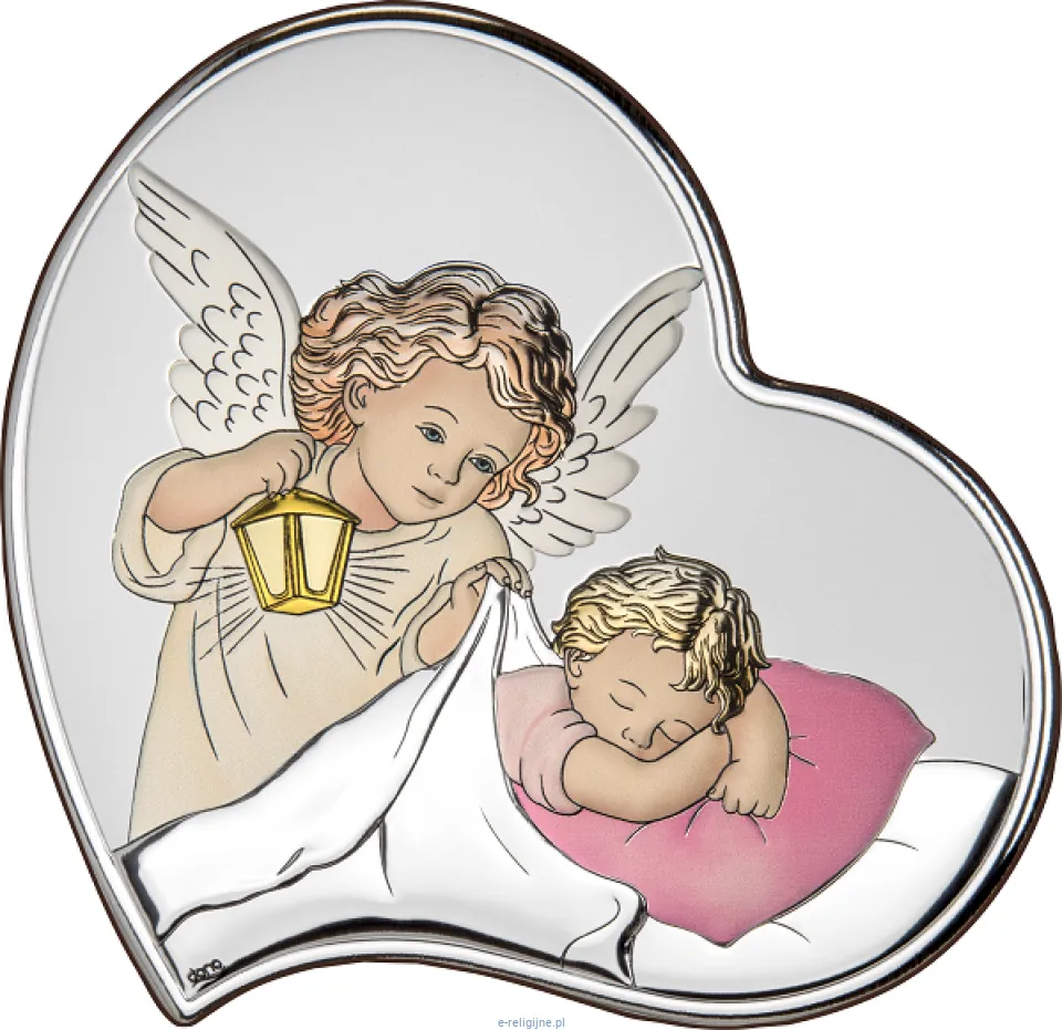 Srebrny obrazek Aniołki nad łóżeczkiem z modlitwą - prezent religijny 6468S/2C, 6X12
