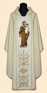 Uroczysty biały ornat z haftowaną ikoną świętego Józefa