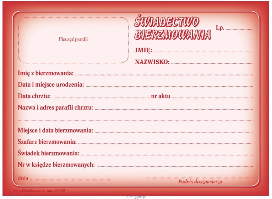 Wydawnictwo Hlondianum, znane z wysokiej jakości materiałów liturgicznych, oferuje starannie zaprojektowany druk, który spełnia wszystkie wymagania kancelarii parafialnych oraz podkreśla wagę sakramentu bierzmowania.