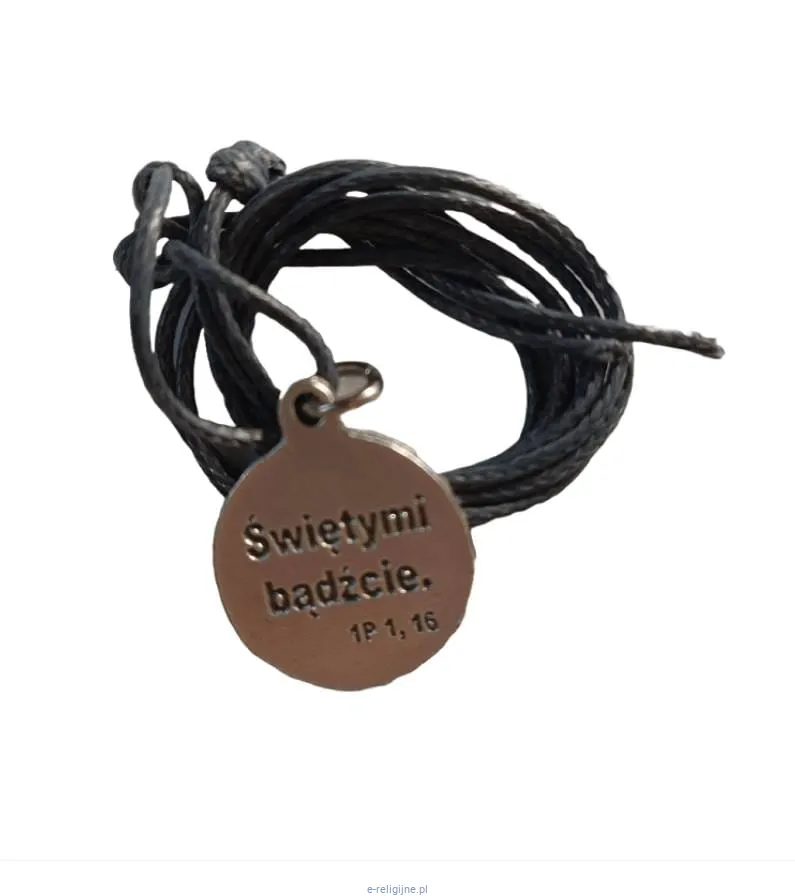 Na rewersie medalu znajduje się cytat „Świętymi bądźcie. 1P 1, 16”, co nadaje zawieszce jeszcze głębszego duchowego przesłania.