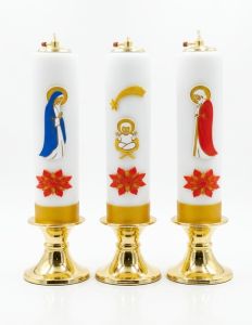 Zestaw Świec Olejowych "Święta Rodzina" – 3 szt. (30x8 cm) z wkładami regulowanymi