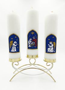 Zestaw trzech świec ołtarzowych (tzw. soborowych) przygotowany specjalnie na okres Narodzenia Pańskiego.