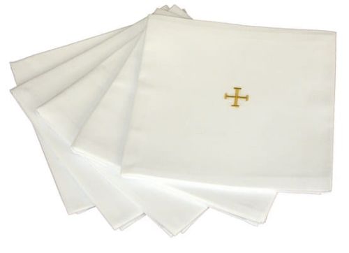 - Korporał — płócienny, lniany lub bawełniany, biały, bez haftów w centrum. Rozkładany na powierzchni przy łóżku chorego, na nim stoi otwarte cyborium.